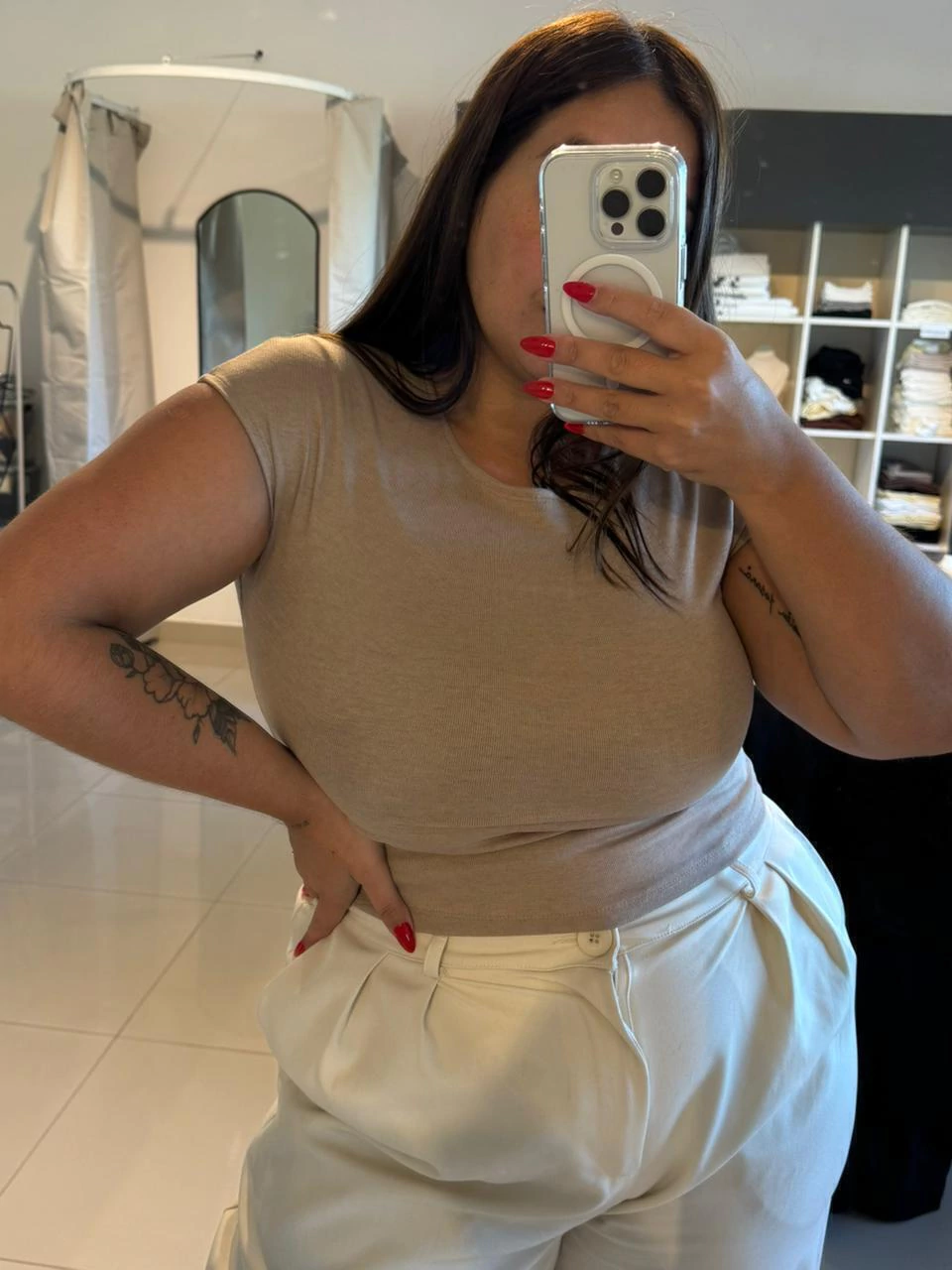 Una basica cortita, cuello redondo. Divina la calidad. La simpleza tambien puede verse increible!